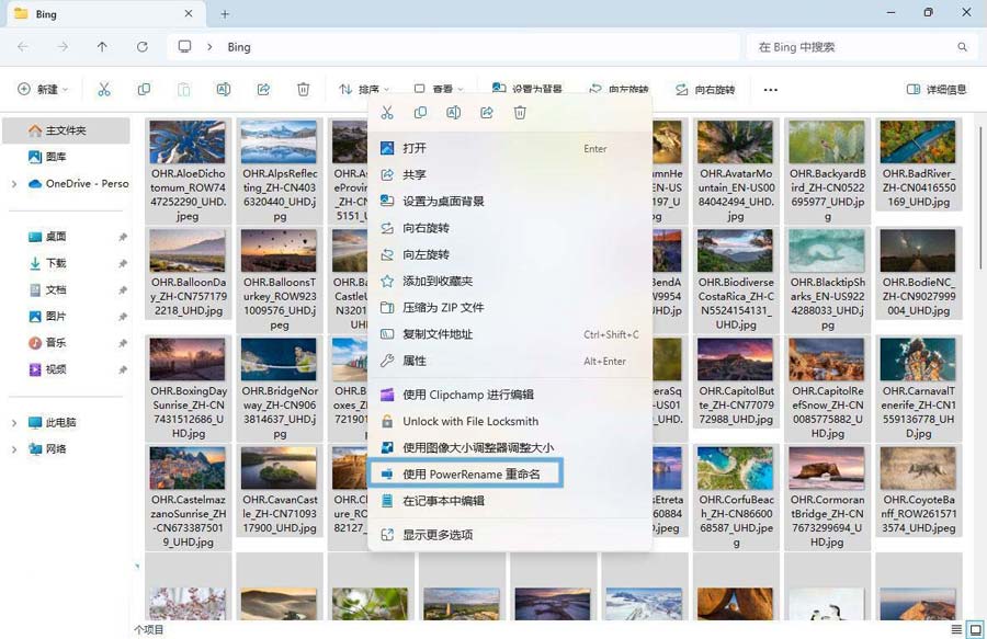 4. 选中要重命名的文件,然后右键单击选择「使用 PowerRename 重命名」。