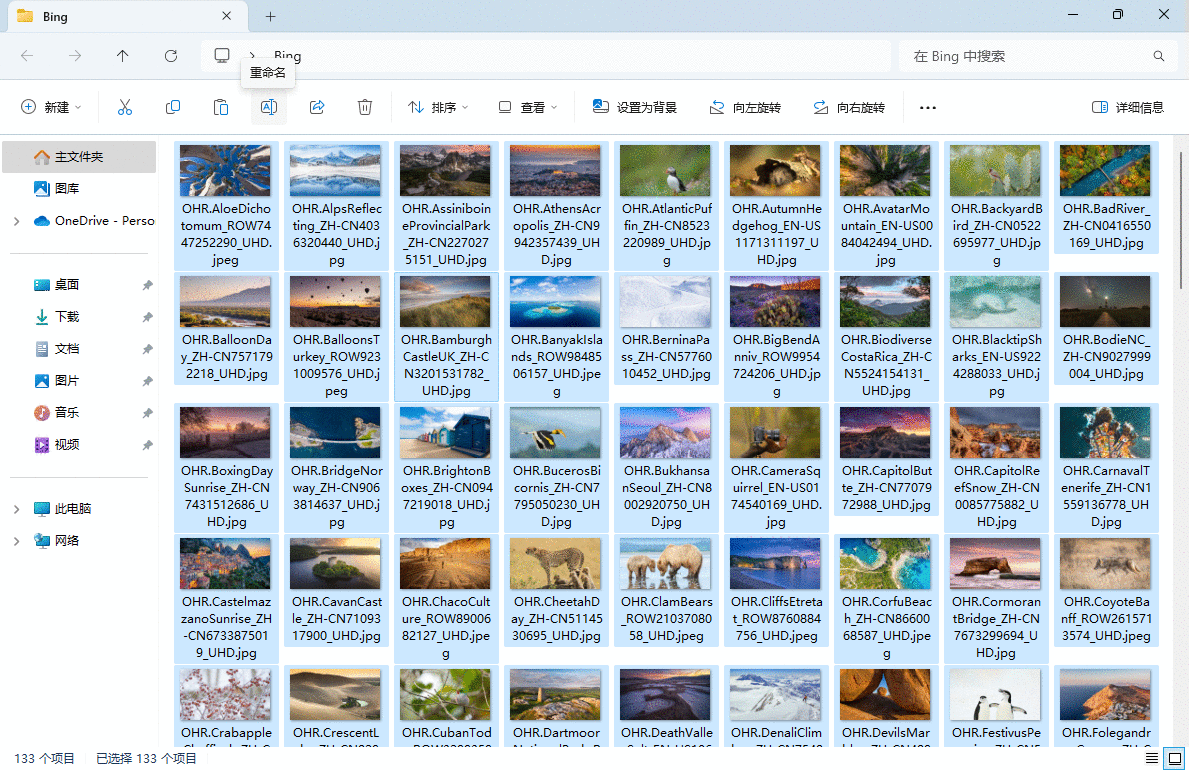 例如,我有一批从 Bing 下载的桌面壁纸,文件名类似OHR.BalloonDay_ZH-CN7571792218_UHD.jpg格式,要将: