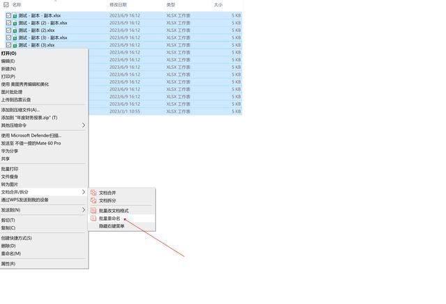 第一步:把需要重命名的文件先整理到同一个文件夹中,这样方便后续操作,选中这些文件,在文件上右击下拉选择“批量重命名”