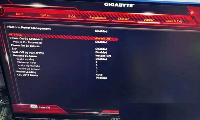 注意:部分技嘉主板BIOS不同,也有在 settings 选项卡中,找到 AC BACK (电源恢复时系统状态) 选项,将其设置为 Always ON (永远启动)