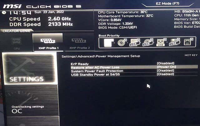 首先,将电脑关机,重新开机,连续按键盘上的 Del 键,进入主板BIOS,按键盘上的 F7 键,或者点击最上面的EZ Mode(F7),点击 SETTINGS 中,进入 Advanced ,再进入 Power Management Setup ,找到 Restore alter AC Power Loss 选项,将其设置为 Power On 即可,设置完成后,按键盘上的 F10 键,保存并退出即可。