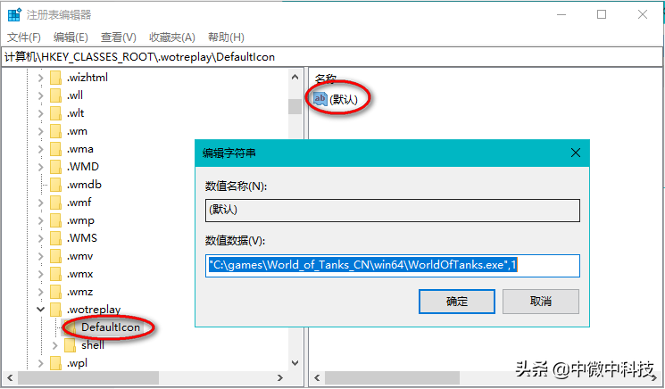 第三步:找到后,双击右边红圈打开“编辑字符串”,然后修改或删除目录 ↓