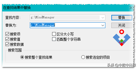 第二步:“搜索” -> “在查找结果1中替换” ↓