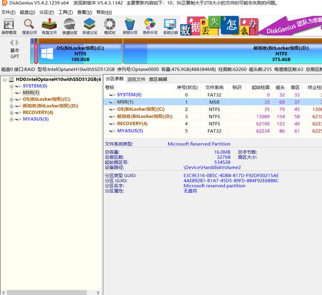 其实系统分配的MSR分区的容量并不大,以我这台电脑为例,也就是16M的容量,将MSR分区删除掉对当前系统也没有任何影响。
