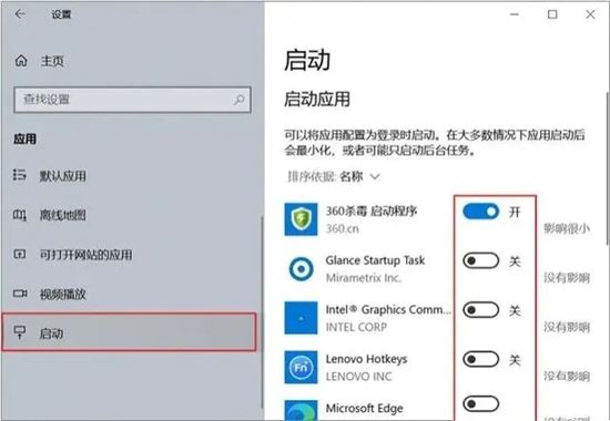 直接使用快捷键【Win+i】进入设置界面,点击【应用】。在左侧找到并点击【启动】,在右侧出现的应用名称列表中关闭不必要的启动项即可。