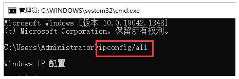 2.在打开的窗口中,输入ipconfig/all,按下Enter键;