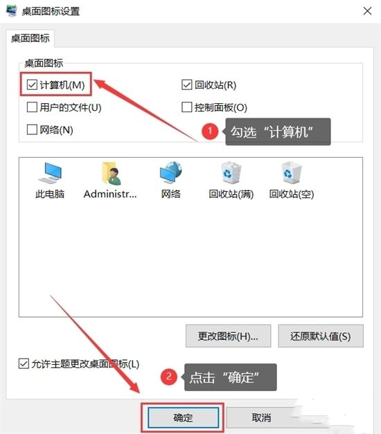 3、把桌面图标下的【计算机】前面的方框勾选上,单击【确定】就可以了。