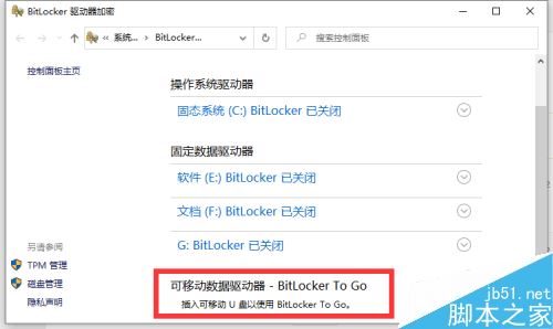 插入U盘后,点击“启用BitLocker”功能。