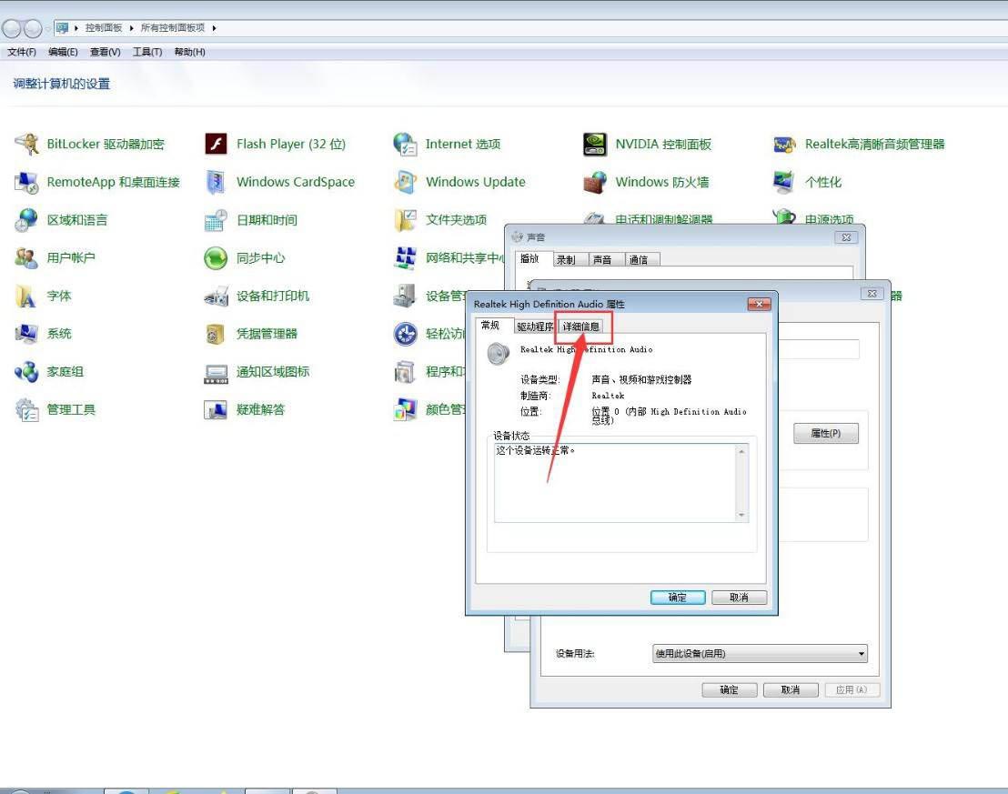 接下来,在进入到扬声器常规属性设置界面后,此时,我们点击【属性】按钮,在弹出的界面中,我们点击上方菜单栏中的【详细信息】选项卡;