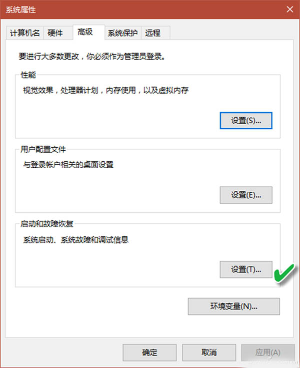 接下来,在“系统属性”窗口的“高级”选项卡下,点击“启动与故障恢复”分组下的“设置”按钮(图2)。在随后出现的“启动和故障恢复”窗口中,将“系统失败”分组中的“自动重新启动”复选框中的√去掉,然后点击“确定”按钮即可(图3)。