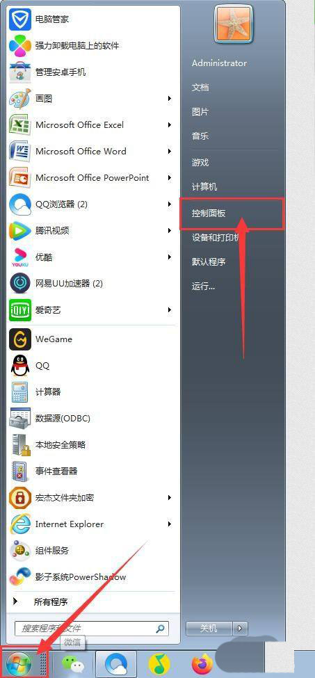 首先,我们打开电脑,进入桌面,在桌面,我们点击开始菜单,我们点击【控制面板】,进入控制面板主界面;