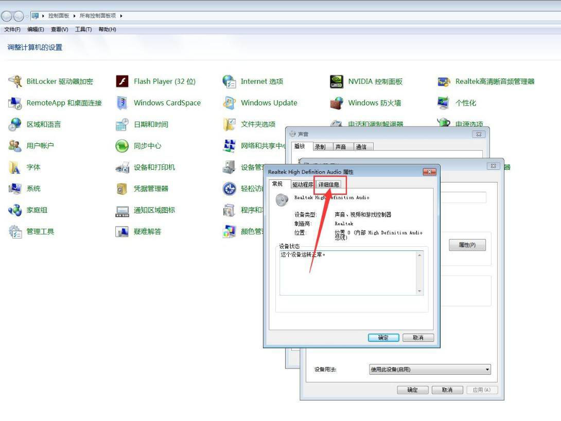 接下来,在我们进入到扬声器常规属性设置界面后,此时,我们点击【属性】按钮,在弹出的界面中,我们点击上方菜单栏中的【详细信息】选项卡;