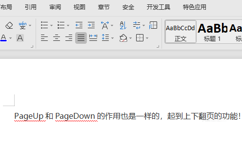 4、在我word文档里面,PageUp和PageDown的作用也是一样的,起到上下翻页的功能!
