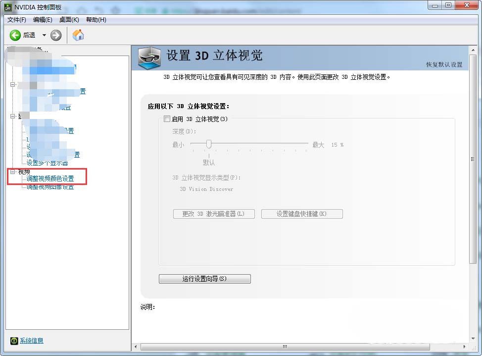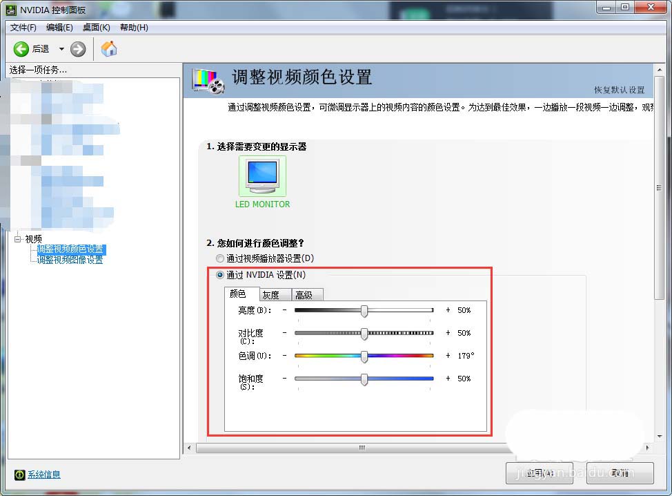 5、进入之后颜色条是无法修改的,我们选择通过NVIDIA设置。
