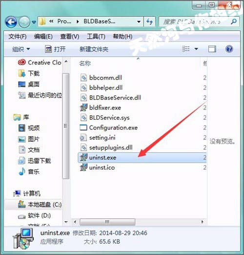 8、这时候,在我们所打开的BLDBaseService的文件夹列表中可以看到,程序被卸载了,但是还有一个文件在列表中。