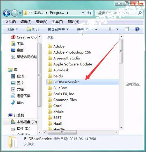 2、然后在弹出的面板的列表中找到BLDBaseService的文件夹,双击进行打开。