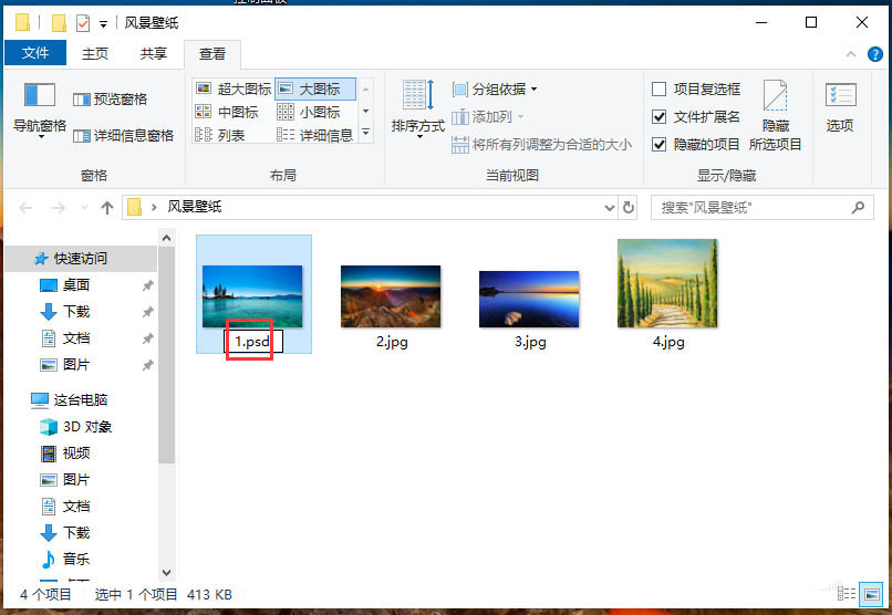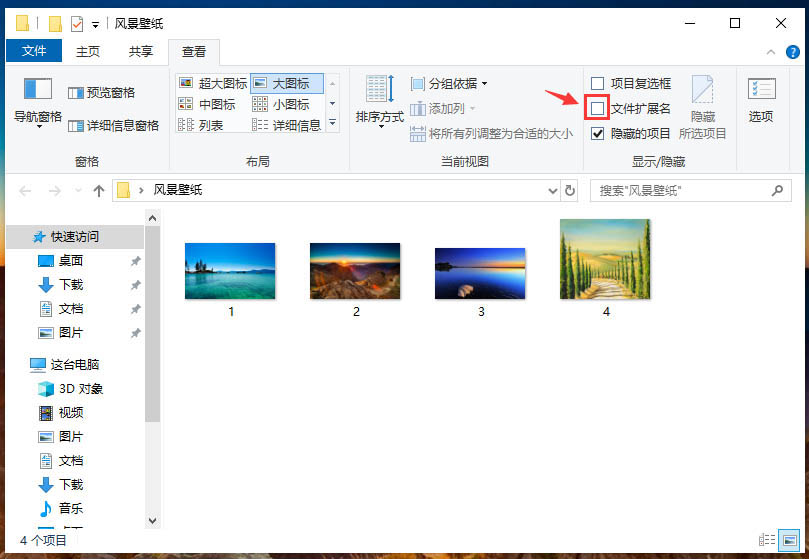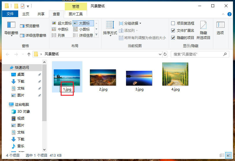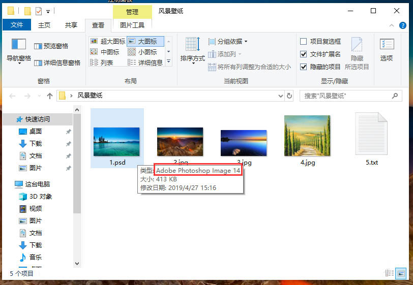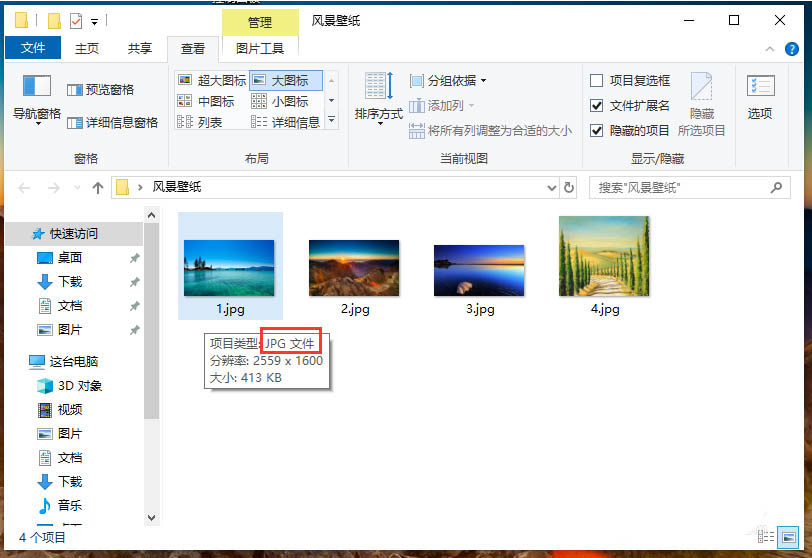 4、完成后,鼠标靠近文件,我们就可以看到文件的扩展名了,比如:本篇图片的扩展名是jpg。